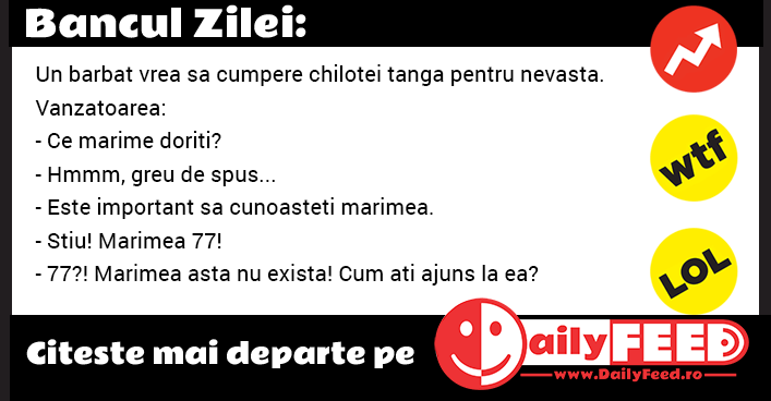 Un barbat vrea sa cumpere chilotei tanga pentru nevasta. Vanzatoarea: